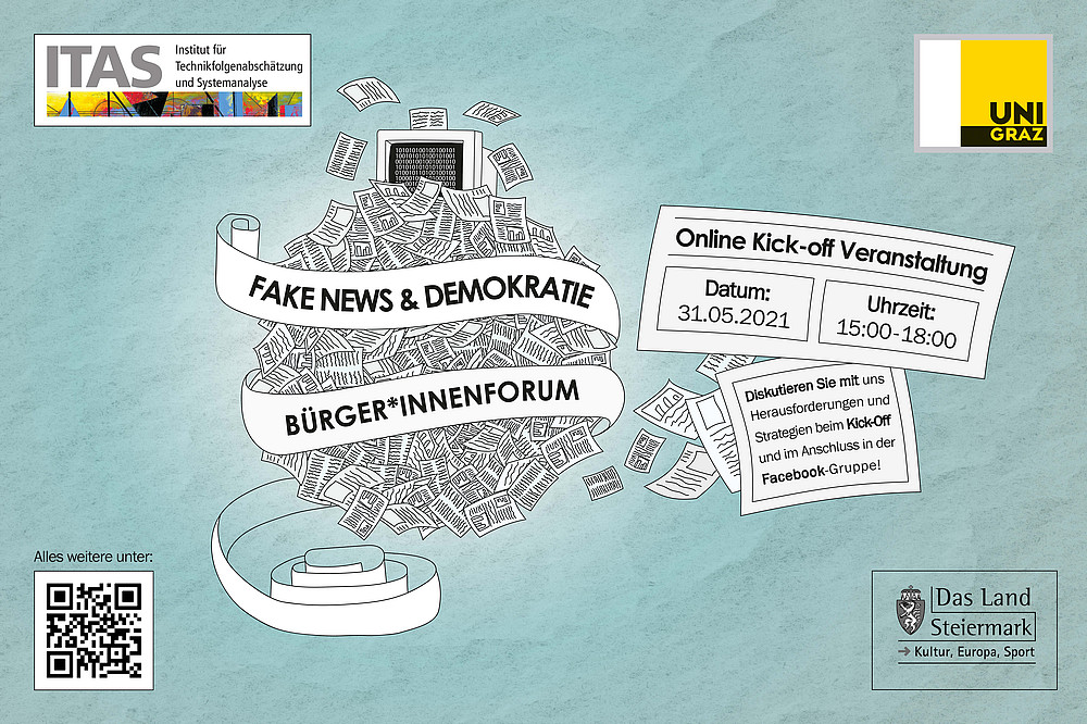 Bei der Startveranstaltung am 31. Mai 2021 von 15:00-18:00 Uhr sind alle Interessierten herzlich eingeladen, mit uns über Fake News und Demokratie zu diskutieren. Um einen Einstieg zu bekommen, wird das Thema aus Sicht der Ethik, Wissenschaftskommunikation und Technikfolgenabschätzung in drei kurzen Impulsvorträgen dargestellt. Dann wird in kleineren Gruppen gemeinsam diskutiert und anschließen wieder in großer Runde die Erfahrungen geteilt.